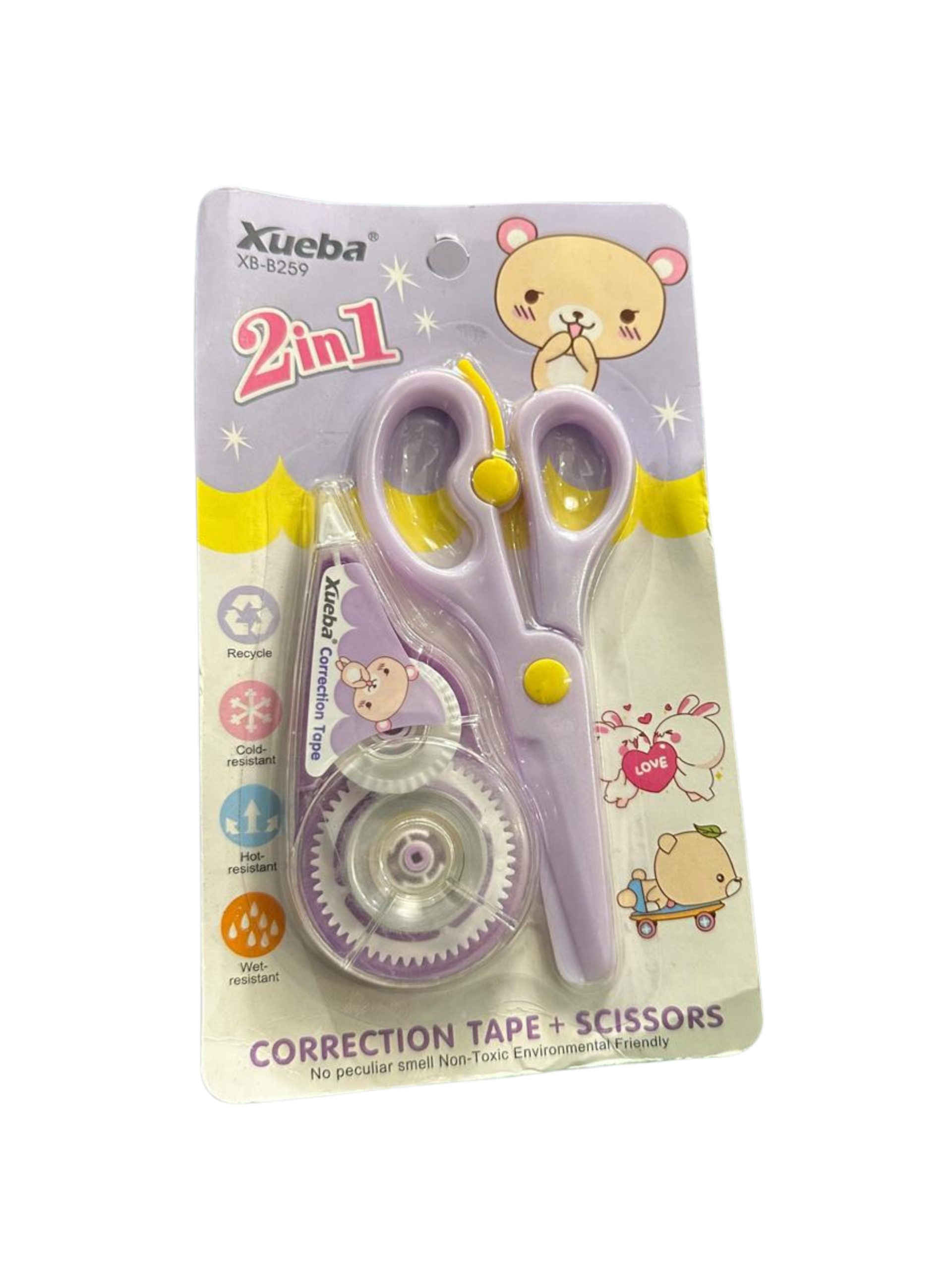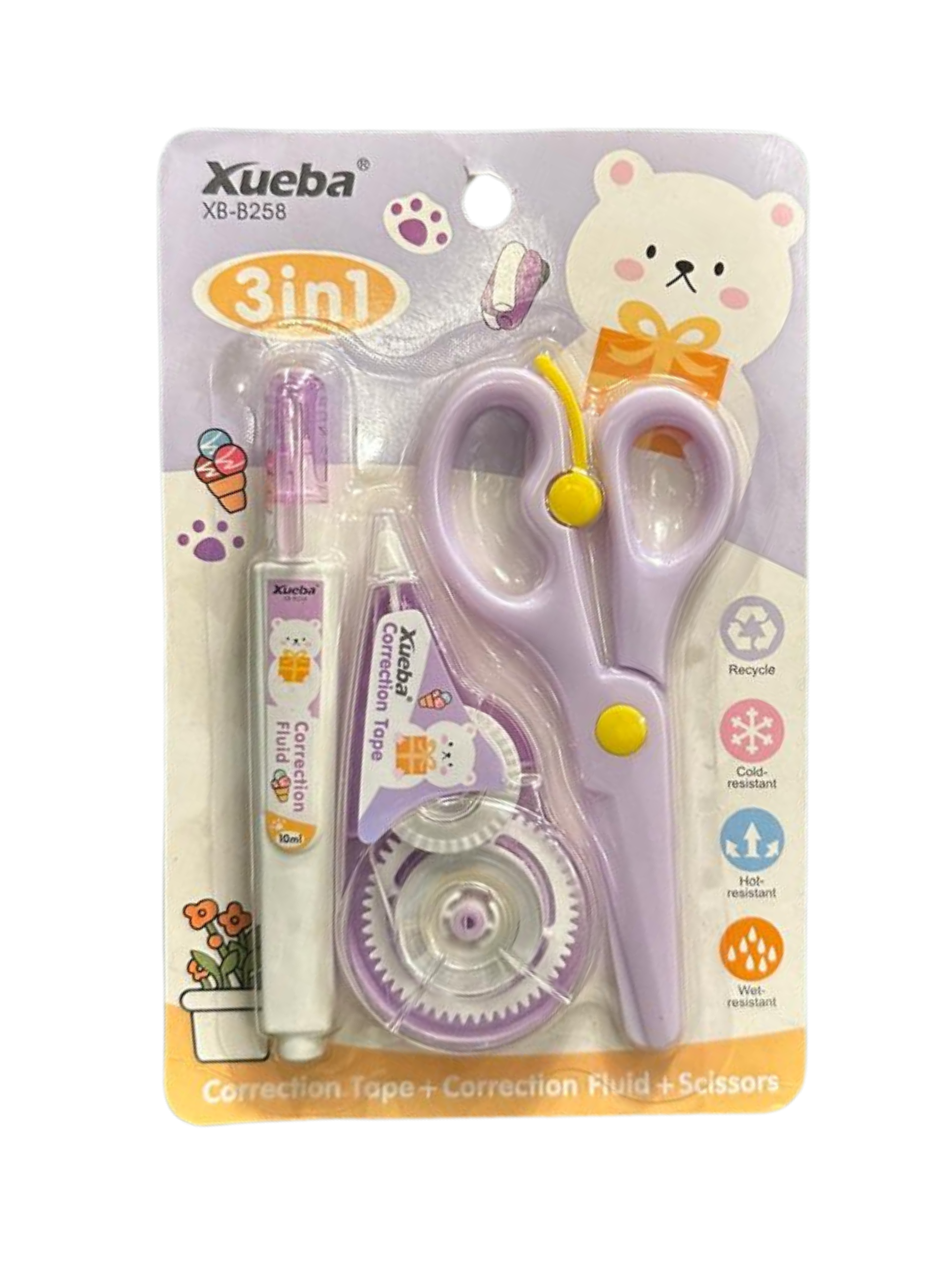 Achieve a flawless finish on every page with our Xueba 2-in-1 Correction Set. This compact duo combines two essential tools in a beautiful lavender theme: a smooth-glide correction tape for instant, dry coverage over long lines of text, and a precision correction fluid pen for targeted, fine-point touch-ups. Both tools are ergonomically designed for a comfortable grip and feature the charming “Polar Bear” mascot. Whether you’re fixing a quick typo or detailing a complex project, this set ensures your work remains neat and professional without the wait time of traditional liquids.